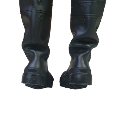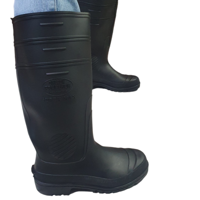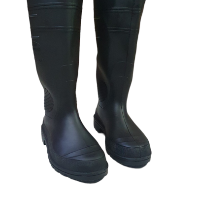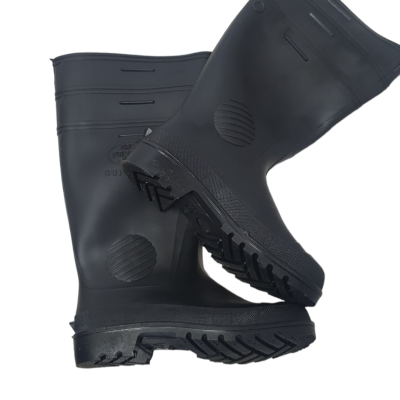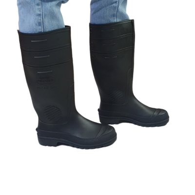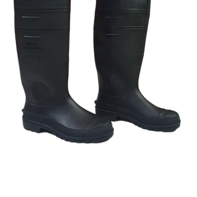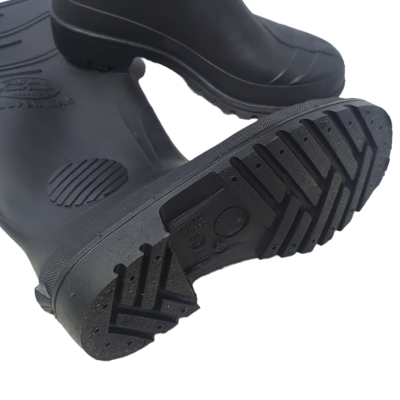 Descrição: Esta bota ocupacional impermeável é confeccionada em PVC preto, com solado antiderrapante de PVC e acabamento interior sem forração.