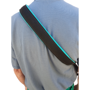 As Alças possuem regulagem de altura, permitindo um ajuste personalizado para maior conforto durante a colheita. As alças se destacam pelo uso de tecido esponjoso costurado, reduzindo o impacto nos ombros do colhedor e proporcionando uma experiência mais confortável.